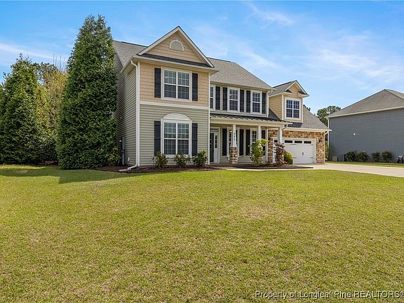 Ask About Assumable VA Loan! Close to Fort Bragg and nestled on Fairway #4 in Baywood Golf Club, this 5BR, 3.5BA home offers a rare blend of privacy, comfort, and resort-like living. The separate Guest House is a true gem—complete with its own full kitchen, living room, bedroom, and bath—perfect for in-laws, guests, a private home office, or creative studio. The main home features an open living room with fireplace, large kitchen with granite counters, breakfast area, office, and flexible dining room or library. The first-floor primary bathroom includes a spa-like bath with soaking tub, water closet, walk-in shower, and dual vanities. Upstairs offers four spacious bedrooms, additional family room or movie room, and ample storage. Step outside to a fenced backyard retreat with a hot tub, firepit, meditation garden, workshop and covered patio. Garage and walk-in attic add even more flexibility to this wonderful home.