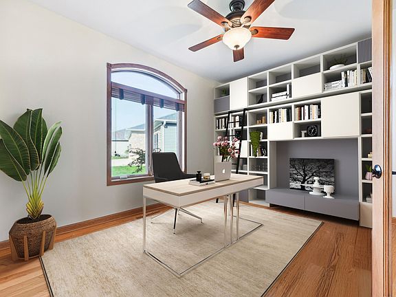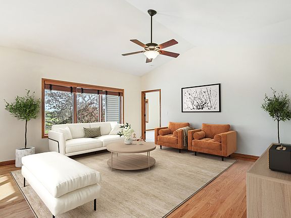 Charming Brackmann-Built Brick Ranch Duplex on a Quiet Cul-de-Sac Pride of ownership shines throughout this beautifully maintained custom Brackmann-built brick ranch duplex located on a peaceful cul-de-sac. Featuring timeless craftsmanship, this home offers an open-concept floor plan with hardwood floors, warm oak trim, and solid 6-panel oak doors throughout. Step inside to a spacious living area with vaulted ceilings that seamlessly connects the kitchen, dining, and living rooms-perfect for entertaining. The kitchen is a chef's delight with oak cabinetry, granite countertops, and updated appliances. Off the foyer, French glass doors open to a cozy office ideal for working from home. Natural light fills the home through quality Pella windows and doors, complemented by numerous ceiling fans for year-round comfort. The main floor also includes a tiled laundry/mudroom with high-efficiency washer and dryer, abundant cabinet space, a storage closet, and a convenient slop sink. Retreat to the master suite, featuring new carpet, an oversized walk-in closet with custom built-ins, and a luxurious en-suite bath with vaulted ceilings, large vanity, soaking tub, and separate shower. Additional storage is abundant with numerous closets and a full unfinished lookout basement with a rough-in for a future bath. Relax on the freshly painted deck overlooking beautifully landscaped grounds and open space. The 2-car garage adds extra convenience to this turnkey home. Don't miss your opportunity to own this quality-built, move-in ready gem in a serene setting!