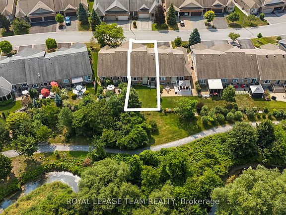 Welcome to this inviting Longwood-built Brooklea model bungalow, offering 2 bedrooms and 2 baths, perfectly situated on a premium lot backing onto a walking path with direct gate access. A covered front porch and beautiful landscaping enhance the curb appeal and set the tone for the warm, welcoming interior. A vaulted ceiling and gas fireplace with wood mantle create a striking focal point in the living room, while the open-concept layout offers a functional flow for both everyday living and entertaining. The kitchen features rich dark cabinetry, an island with seating, laminate countertops, vinyl flooring, and stainless steel appliances, with a bright eating area overlooking the backyard. The primary bedroom is privately located at the rear of the home, with a large walk-in closet and 4-piece ensuite complete with separate shower and soaker tub. A second bedroom and full main bath complete the main level. Similar-toned rich hardwood flooring flows through the living and dining rooms, complemented by neutral paint throughout. Additional features include a double car garage with storage closet, tankless water heater, and an open, unfinished basement with 3-piece rough-in, offering excellent potential for future finishing. Enjoy a peaceful setting close to Kanata's high-tech sector, shopping, parks, and trails. This Brooklea model is ready to welcome its next owners. 24 hours irrevocable on all offers.