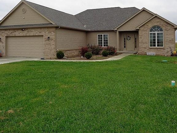 This Rigg custom-built ranch is only 3 yrs. old! Featuring an open floor plan throughout; kitchen w/ eating area opens to great room. Kitchen has custom cabinets w/ island & granite counter tops. Formal dining area, large foyer, master suite w/ soak tub, shower & walk-in closet. Pella windows, finished bsmnt, 3-car garage w/ coated floor, stamped concrete patio, 1/3 acre pond. All this on 5 acres!