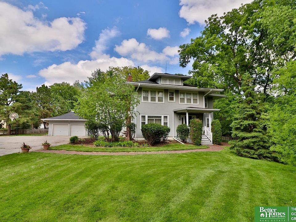 Contract Pending. 1914 farmhouse relocated in 1973 from Midlands hospital location to this beautiful .89 acre lot. This farmhouse is a rare find, combining historical elegance with a beautiful natural setting. It's an ideal home for those who appreciate history, nature, & the charm of a bygone era. LR & formal DR are absolutely exquisite; 10ft ceiling, 15 panel doors, leaded & beveled glass, & Jotul cast iron wood burning stove/fireplace. Spacious kitchen, Hoosier cabinet, butler’s pantry, informal DR & mud room. *Geothermal heating & cooling added by Aksarben HVAC in 2016(warrantied til 2026). The system is durable, efficient, & quiet. Water heater is connected to Geo sys as well. Laundry chute. Second floor has 4 BRs(all with WI closets), Sunrm, & 3 Bathrms. Septic line 2023. Water softener. Garage has 220 V, newer wiring, fits pick up truck, & has attached shed. Backyard is park like. Right in the heart of Papillion.3 mins to Shadow Lake shopping & restauran