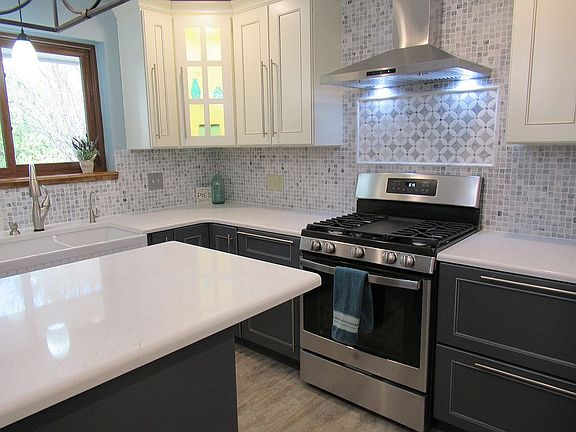 Looking for the Wow Factor? It's all new inside and out with an updated color-scheme, all new stainless steel GE appliances, quartz and marble finishes and new soft-closing cabinets in grey and ivory, a new laundry space was moved upstairs but with basement hookups remaining. Two main floor bedrooms were combined into a spacious, relaxing master suite with his and her closets. Custom barn doors open into a walk-in closet and a two-room marble bath with a 48 shower and toilet in one room and a double vanity in adjoining space. A large brick shady veranda is on the front of the home and a patio area with a new privacy wall in the back. 1 Car attached garage & a two-car garage detached garage with two workshop benches. What more could you ask for in your new home in a quiet, convenient neighborhood,