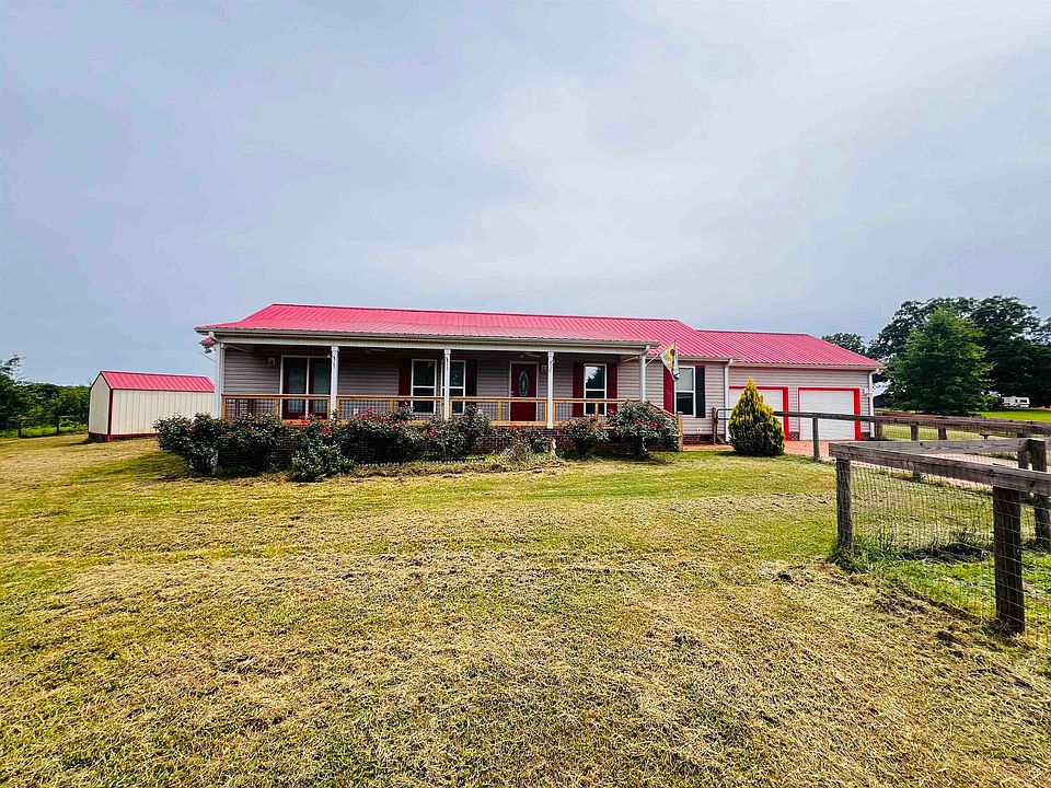 This beautiful home sits on almost a full acre lot that is fenced in and ready for you to make it your next home! Relax on the covered front porch and enjoy the peace and quiet of rural living. The open floor plan features a beautiful kitchen that includes quartz countertops, stainless steel appliances and a gas range. Patio doors in the master bedroom that open up to the covered front porch allow you to enjoy the breeze on those cool afternoons! A two car garage and shed make for plenty of room for storage! Come see this home today before it's too late!