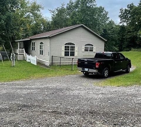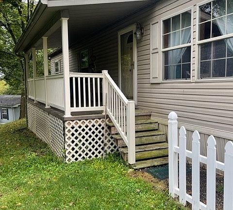 This 2005 double wide has been well maintained. Large front and rear porch. Gas heat, c/a, newer roof, master bedroom and bathroom with shower and garden tub, 2 additional bedrooms and another full bathroom, walk in closets, open concept with sunken kitchen and living room, plenty of storage throughout. 2 out buildings and a 20’x18’ car port. Private setting located at the rear of Creekside community with views of a pond. Lot rent of $275 includes trash, snow removal and lawn care. Buyer must be park approved. (Located lot #37 Catfish Lane)