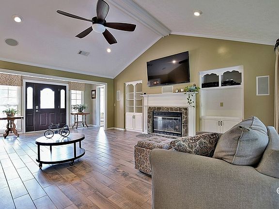 Beautiful 3 bedroom, 2.5 bath home situated on a 0.92 acre lot in Harris County! Kitchen features granite countertops, tile backsplash, stainless appliances plus plenty of cabinet space. Tile flooring throughout majority of home. Spacious master suite w/ sitting area. Master bathroom features granite counters, double vanity, tiled shower & walk-in closet. Backyard oasis features a huge fenced-in backyard, in-ground pool, patio area, plus an oversized outbuilding that passes with the sale!