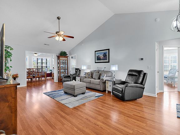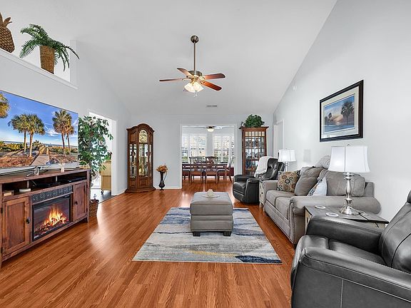 Discover this immaculate 3-bedroom, 2-bath home in the desirable Island Green East community! This beautifully maintained gem sits on a pristine, manicured corner lot and is move-in ready. Step inside to find vaulted ceilings, hard-surface kitchen counters, a stylish tile backsplash, and stainless steel appliances. The home features plantation shutters, along with brand-new flooring in the kitchen and bedrooms, new garage door with screen, new interior doors, all new electrical receptacles and light switches, all new light fixtures and ceiling fans, pocket doors to dining room and more. The kitchen also offers a convenient pantry for extra storage. Enjoy outdoor living on the oversized patio, perfect for relaxing or entertaining, while overlooking the beautifully landscaped backyard. Located in the highly sought-after St. James School District, this home offers both charm and convenience. Don't miss out on this incredible opportunity—schedule your showing today!