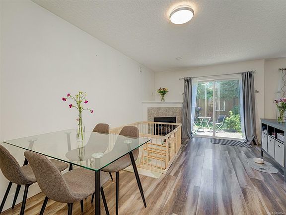Welcome to this awesome family-friendly 3-bedroom, 3-bathroom duplex-style townhouse. Nestled far back from the road, this home welcomes you with a cathedral entrance. The main floor boasts a convenient 2-piece bathroom, an open-concept kitchen-dining-living room featuring a cozy gas fireplace and sliding doors to the fully fenced, sunny, private backyard – a true urban oasis. Upstairs, you'll discover three well-appointed bedrooms, a main bathroom, and a generous laundry room. The primary bedroom offers a large walk-in closet and a luxurious 4-piece ensuite with a relaxing soaker tub. This unit also includes a single car garage and extra parking beside the home. Brand New Roof was just installed in the summer! With low strata fees, this pet and family-friendly townhouse is perfect for all. Enjoy the convenience of being within walking distance to all amenities, including the bus exchange, Belmont Market, restaurants, schools, and a full-service shopping centre.