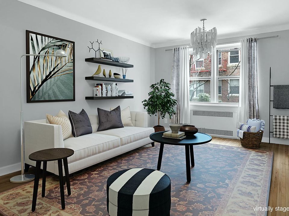If you are looking for a fully renovated, move-in ready, two-bedroom apartment, then this just might be the place for you. It's spacious and quiet, and looks out at the coop's central courtyard. The oak floors have been refinished, all the appliances are new, the walls are freshly painted, and there are six closets. There is a large sunken living room. The primary bedroom has three windows and is king-sized. The second bedroom can easily hold two twin beds or a queen-size bed. The kitchen has space for a table, or you can use the entry foyer for your dining room table or create an office space in one of them. There is laundry, and a bike room ($5/month) in the basement. Garage parking is available ($120/month) with a short waitlist. There is a door person 18 hours a day , 24 hour security on the corner, and an on-site Super. Two blocks to shopping and the Q Train on Avenue J.