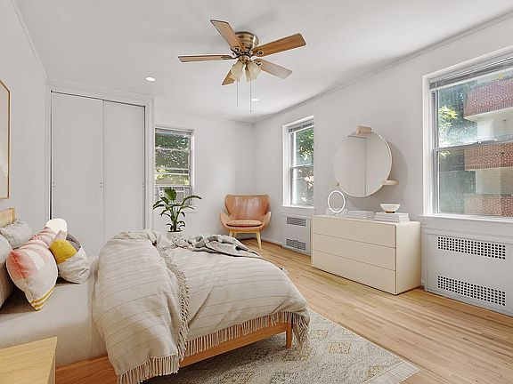 Welcome to your new home! 920 E 17th Street #303 is an oversized 2-bed 1-bath co-op on a charming dead-end street conveniently situated in the heart of Brooklyn. This spacious apartment is full of charm and functionality, starting with a fabulous sunken living room that's offers a grand living space and high ceilings. Off of the foyer is an extra-large kitchen with ample cabinet and counter space, plus a large window overlooking the neighborhood trees. One of the best features of the kitchen is the space offered for a dining table or charming breakfast nook! The king-sized primary bedroom offers space and comfort with THREE windows and TWO CLOSETS! There are even more closets in the hallway that leads to the second bedroom. This bedroom is also large in size, and can easily fit a queen size bed or home office. The bathroom features a separate standing shower AND bathtub, as well as a cabinet for storage. The apartment has been freshly updated with new floors and fresh paint. Situated on a quiet dead-end block, this co-op offers a peaceful retreat while still being close to all the amenities Midwood and Ditmas Park have to offer. This delightful apartment is ready for you to call it home. Living in pet friendly Terrace Gardens means enjoying the convenience and luxury of a full-service building. You can enjoy the comforts of a full-time doorman, as well as building security. There is a live-in super, a package room, full time staff/porters, and an on-site laundry room. There is also bike storage in the building, and parking (with a short waitlist) for $120/month. Located in the charming Midwood area of Brooklyn, you’ll have access to a vibrant community with an array of amenities, parks and shops. With easy access to public transportation via the B and Q trains, commuting around the city is a breeze. *There is a $374/month assessment in place for the next 18 months.