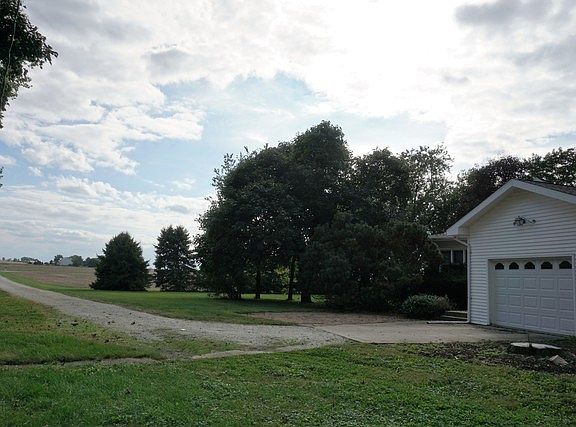 Time to enjoy country living. A long lane takes you to this home with over 1,500 sq. ft. of living, resting on 3+ acres of land. Peaceful evenings can be spent on the patio admiring the sunsets. Features include open living room, dining room and kitchen, large arched doorways, wood floors, tall ceilings, wall niche, pocket doors, 2-panel doors and galley style kitchen with stove, refrigerator and built-in spice cabinet. Two bedrooms on the main level and 1 bedroom on the upper level with separate area for a playroom or office. The basement gives you additional storage space and room for a workshop. Seller is offering $1,000 flooring allowance.