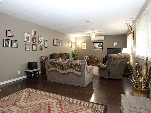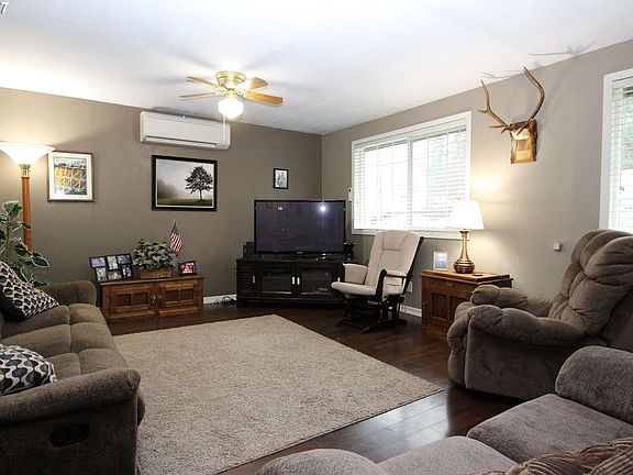 Don't miss this one! Conveniently located 3 bed, 2 ba home with spacious living room! Newer laminate flooring in living/dining rooms, interior paint, dishwasher and ductless heat system. Spacious deck, fenced backyard outbuilding with workbench and mature cherry and pear trees!