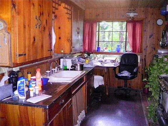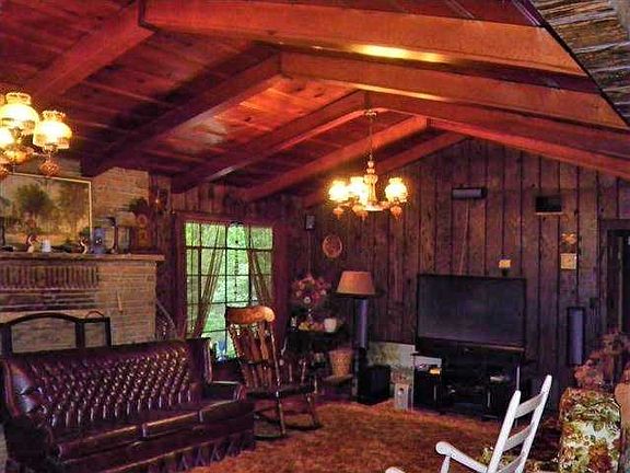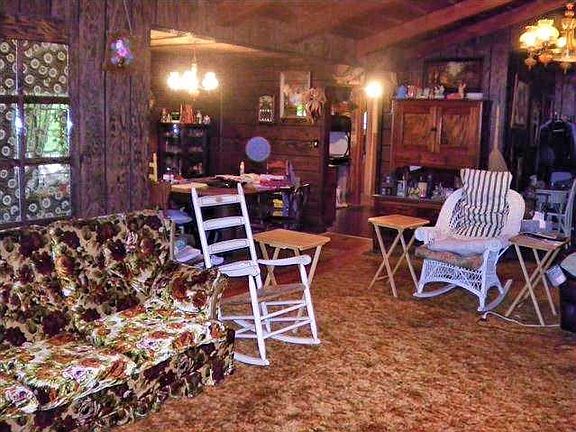 Hidden treasure! Very secluded log home on 1 acre in town. 3rd bdrm has armoire as a closet, 2 bedrooms have their own bathroom, converted garage is not completed. 3rd bathroom is also not completed. Small 2 bed/1 bath house on property being used as storage only.