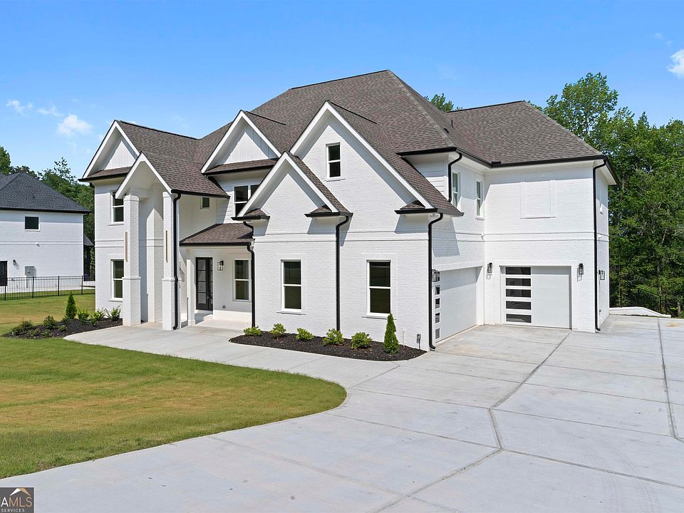 This gated and private home is situated on over an acre lot in the middle of an enclave of four distinct new construction homes- complete and move-in ready. As you enter the home you'll notice the entire home has an abundance of natural lighting that shines through the two story family room that features a wall of windows. The main level features open-concept living; white oak hardwood floors, a private home office, spacious dining area with a contrasting and modern design accent wall, a secondary bedroom, half bathroom, a spacious and functional family room, a Chef's kitchen and a covered patio with a ceiling fan. As you enter the home you will notice modern black hardware and sleek lighting fixtures. The chef's kitchen is equipped with high-end appliances, including a six burner gas cooktop stove, a built-in oven and microwave, an oversized hooded vent, a walk-in pantry, custom all white ceiling height cabinets and a contrasting black extended quartz countertop for a modern contrast, the kitchen and offers ample storage and workspace for the discerning home chef or for entertaining guests. The family room has soaring floor to ceiling windows, a fireplace surrounded by custom tile and a decorative wall that flows to the coffered ceiling. There is a secondary ensuite bedroom on the main level with an oversized frameless shower, walk-in closet and washer and dryer connections. There is a functional mudroom off of the impressive three car garage that leads to the kitchen and main level secondary bedroom. The covered patio is a true treat as the area has a ceiling fan, and staircase that leads to the flat level backyard and basement.The upper level of the home is equally impressive. As you walk up the modern staircase featuring a stunning catwalk with modern design you will find a loft with built-in bookshelves, an electric fireplace and cabinets perfect for a second family room. The large laundry room is upstairs conveniently across from the owner's suite.The oversized Owner's Suite has a sitting area and electric fireplace with shiplap detailing. The grandiose-sized walk-in shower with dual rain shower heads and a separate soaking tub are accented by navy blue cabinets and stunning modern blue marble-designed tiling, creating a spa-like experience in the comfort of your own home. The custom walk-in closet offers ample space for all of your clothing and accessories, providing the ultimate dressing room experience day after day. The owners suite is a true retreat, designed with rest and relaxation in mind. There are three additional secondary bedrooms on the upper level. One bedroom features an ensuite with an oversized frameless shower and oversized closet. The other two nicely appointed bedrooms feature jack and jill bathrooms The catwalk view from the staircase into the family room is breathtaking. With an elevated loft that is both comfortable and stylish. Built-in bookcases, an electric fireplace, and tray ceilings create a warm and inviting atmosphere, making this space perfect for relaxing or entertaining. Every inch of this home has been carefully crafted to create a sense of elegance and luxury. Gleaming wood floors are featured throughout the home. Located just minutes from Little Mulberry Park and the Chateau Elan Winery Golf Club and Resort. Additionally, the home is located within an above-average school system in addition to transfer opportunities for Mill Creek and Buford with transfer fees. This property offers both convenience and luxury