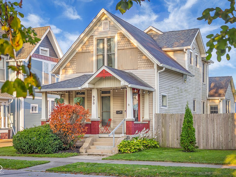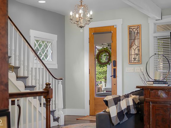 A short commute, and close to town center, shopping, and outdoor recreation! Presenting the immediate structural charisma of a craftsman-style home, this classic 4-bedroom, 3.5-bathroom beauty is a special gem in the Downtown area. The property is an easy pedestrian distance to town center, Downtown Shopping, and Mill Race Park. Across the threshold, nice touches embrace you with hardwoods throughout. Enjoy an open layout, stylish fixtures, plentiful natural light, neutral decor, minimalist flat ceilings, and a wood-burning fireplace in the living room. Delectable notions become aromatic realities in the roomy, stylish chef's kitchen featuring custom wood cabinetry, an induction cooktop, a premium Thermador double oven, a large suede granite island, and ample pantry space. The kitchen opens seamlessly into the dining room and backyard. The calm primary bedroom includes a walk-in closet and a private bath with a walk-in shower. The other three bedrooms, distributed on multi-levels for privacy, are unique and ready for your decorative touch. The unfinished basement is perfect for storage or conversion. The spacious detached three-car garage is incredibly hard to come by this close to downtown. Exteriors include a pavers patio and breezy front and back porches and a storage shed in the backyard.