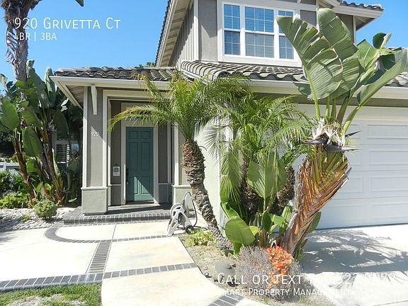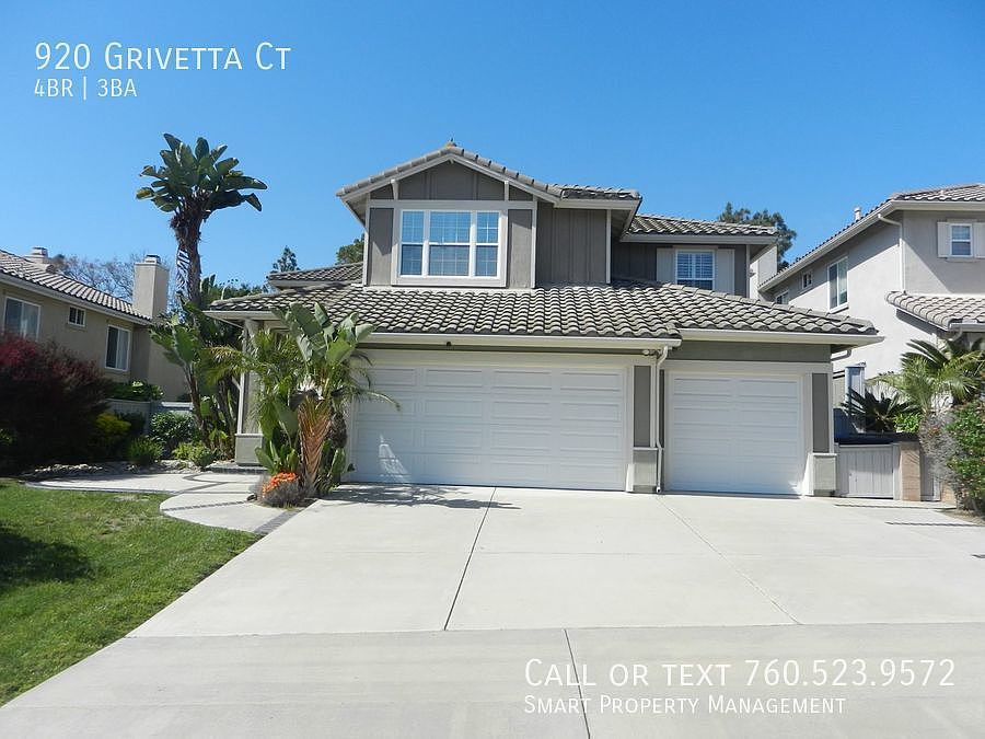 920 Grivetta Ct., Carlsbad, CA 92011. Welcome to this spacious Aviara home on quiet cul-de-sac. 4-bedroom, 3-bathroom , 2658 SF, 3 car garage located in the scenic area of Carlsbad, CA. Carlsbad School District: Aviara Elementary, Pacific Rim Elementary, Aviara Middle, Sage Creek High Central forced heating and air conditioning for comfortable climate control. Mohawk laminate flooring. Owner paid yard maintenance. Home boasts an inviting atmosphere with spacious living areas and plenty of natural lighting. Quality upgrades including granite counters, tile floors, and Mohawk laminate flooring. Kitchen is equipped with modern appliances and a generous amount of cabinet space for all your kitchen essentials. First floor has a bedroom and full bath and lots of closets. Second floor bedrooms offer ample space and have large windows that provide views of the surrounding area. Enjoy the low-maintenance landscaping and peaceful backyard setting as you relax and enjoy nature. This beautiful home is situated in a welcoming neighborhood that's close to restaurants, shopping centers, and entertainment options. Walking distance to hiking trails and located in the highly sought-after Carlsbad School District. Come see for yourself why this home is the perfect place to create lasting memories! Pets OK with owner and home owner's insurance approval and additional deposit/rent. Thanks for your interest! This Property Proudly Managed By Smart Property Management and Kerrigan Homes