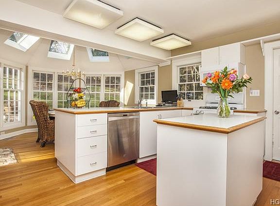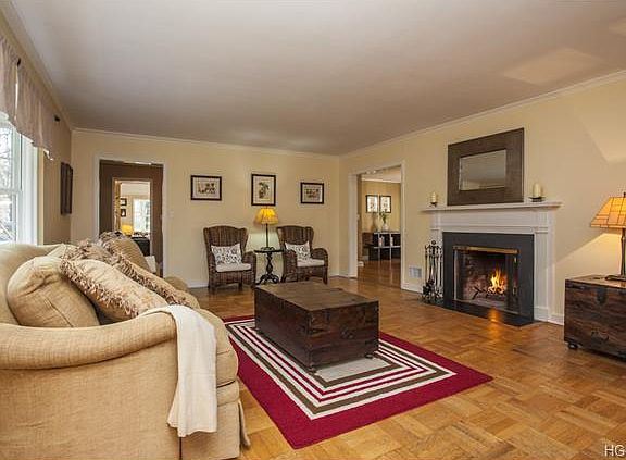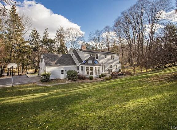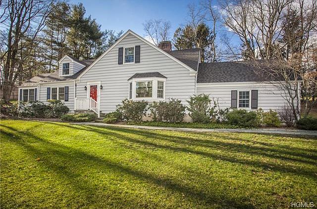 Spacious Cape Cod/Colonial. Gracious formal living room w/wood-burning fireplace, bay window & parquet floor w/ribbon inlay. Dining room basks in natural light from French doors to bluestone terrace. Kitchen w/center island & great work space open to octagonal breakfast room w/long windows, sky lit cathedral ceiling & sliding glass door to terrace. Family room boasts built-ins & opens to sunroom w/sliding glass door to second bluestone terrace. Main floor bedroom w/built-in bookcases & separate full bath. Dormered master w/built-ins, dressing area & ensuite bath w/marble vanity. Two bedrooms share renovated Jack-n-Jill bath. Large lower level recreational room w/wainscoting & wood-burning fireplace. Natural gas-fed utilities & generator add peace of mind. Lovely property w/lawns, mature trees, vegetable garden, stone wall, playground & split rail fencing. Convenient to town, shops, train & highway. SqFt does not include lower level. Taxes do not reflect NYS Star exemption.