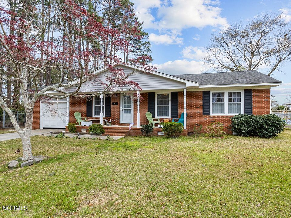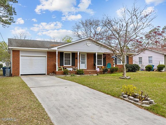 Classic Brick Ranch Home offers privacy in the Heart of Morehead City. Walking in this open living area is a breath of fresh air. All on one level 3 bedroom 2 bath home with roomy eat-in kitchen. Home features large kitchen, principal suite, single car garage, expansive rear lawn with beautiful trees and azaleas.