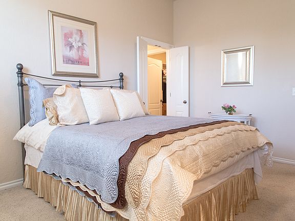 One of the largest plans in Fiddler's Green, a gated community, with so much room to roam! This is the best location in Norman's only 55+ community, and there are no steps into the home. Amenities include a newer hot water tank, updated hvac, large walk-in storm shelter in the garage, and a wonderful covered patio to enjoy brisk fall days. Also comes with plantation shutters, a large walk in shower, an oversize master walk-in closet, and so much more.