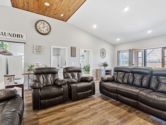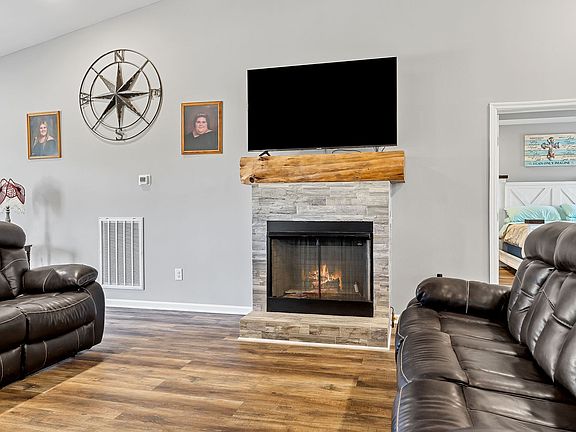 Welcome to your dream country home! This stunning farmhouse style property is now on the market for the first time, situated on 6.01 acres of flat. With 1900 sqft of living space, this home features 3 bedrooms, 2 baths, and a spacious living room complete with a cozy fireplace and recessed lighting throughout, large utility room and luxury vinyl plank flooring. The open concept design includes a dining area leading to the outside. Beautiful white subway tiles, stainless steel appliances, granite countertops, and that most sought after oven in the wall along with tile flooring in the kitchen is a cook's dream come true! One of the unique features of this home is its efficient use of space - it was built without any hallways, and has large windows allowing for plenty of natural light to fill the home. Built in 2022, everything from the windows to the HVAC system and roof is still brand new. Step outside to enjoy a screened-in back porch perfect for relaxing or entertaining. Additionally, there is a huge detached garage/workshop with a side entrance, concrete flooring that has electric installed, all this will provide ample storage and workspace. The parking area around the garage/workshop and house is all concrete with plenty of space for multiple vehicles. While there is a propane gas tank on the property located behind the garage it has not been hooked-up to the building (buyer has option to have it hooked up and use, if so desire). Enjoy the peaceful surroundings of the countryside, surrounded by farmland and breathtaking views from both the front & back porch. Located just a short distance from downtown Smithville, Short Mountain Distillery and the beautiful Center Hill Lake, this home offers the perfect blend of tranquility and convenience, with about a one hour drive to Nashville. Don't miss out on this rare opportunity. Buyers and buyers agent to verify all pertinent information.