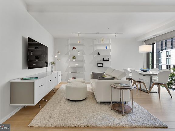 Exquisite 1 bed, 1.5 bath unit in The Residences at CityCenter in the heart of Downtown DC! This stunning home includes a secure garage parking space, extra storage, contemporary finishes, floor-to-ceiling windows, an open floor plan and wide plank hardwood flooring. The luxurious and bright living room flows nicely into the modern kitchen offering gourmet Bosch and Miele appliances, plentiful cabinet storage, and an island with extra seating. Set up your home office on the built-in desk as well. The primary suite features ample storage and an ensuite bathroom. Open up the Juliet balcony to enjoy some fresh air and the view of the stunning courtyard. City living at its finest - located next to endless designer stores, dining and entertainment options. The building offers 24-hour concierge service, a doorman, a rooftop deck with unbeatable views, gas grilling stations, fitness studio, social lounge and access to the pool next door! Do not miss out on this amazing opportunity. All square footage and dimensions, though compiled from sources deemed reliable, are estimates.