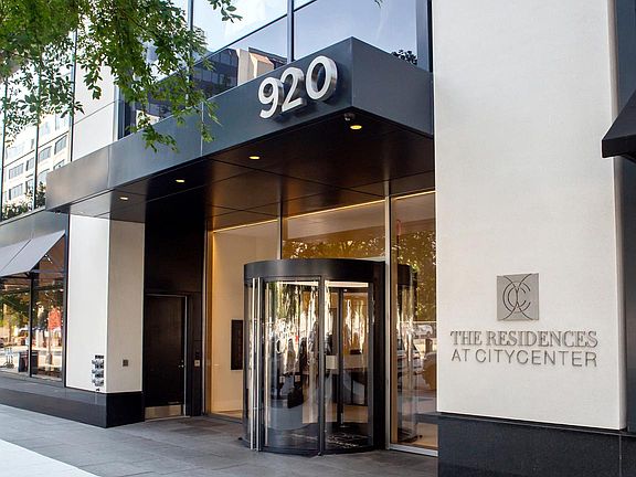 The Residences at City CenterDC! Commanding Corner Presence! Massive floor-to-ceiling windows provide abundant natural light and sweeping urban views as far as the eye can see! Sophisticated decor and spacious - over 1450 square feet - corner unit boasting an expansive living room-dining room that lends itself to elegant entertaining, and two bright bedrooms each with full bath and private balcony, for gracious living. Park the cars in your own two garage parking spaces - one with Tesla charger - store your suitcases in your generous walk in storage space and move right in, absolutely no work required here! CityCenterDC, Washington's premier luxury development with fine dining, exclusive shopping, museums, theatres, sports venues and metro mere steps away. It's a lifestyle choice and a choice lifestyle.! Doorman building