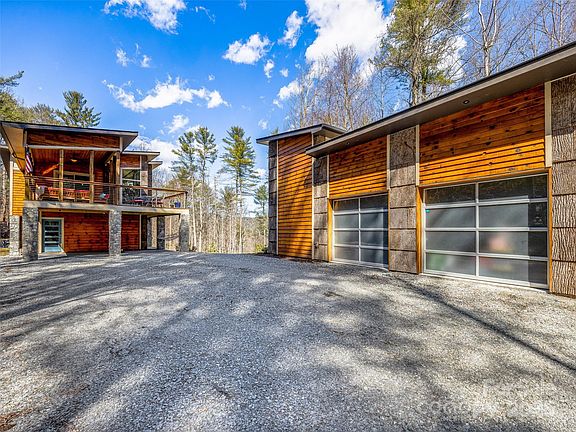 Nestled on 20+ acres of pure mountain beauty, this contemporary retreat embraces the outdoors with decks off every room, a large covered porch, and a private trail system. Enjoy a peaceful pond and waterfalls. Just minutes from DuPont and Pisgah National Forests, adventure is always close by. Inside, the great room stuns with gas fireplace, walls of windows and well appointed kitchen. The lower level offers two bedrooms, a bath, laundry, and a cozy family room. A detached studio with a Peloton, row machine, sauna, and a two-car garage add to the practicality. The greenhouse that is humidity controlled is something special.