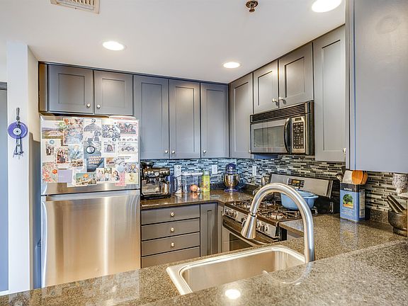 Welcome to this penthouse unit with oversized balcony offering tremendous views of NYC! This 1 bed/1 bath apartment is well laid out for optimal space. Elevator building with brand new in-unit washer/dryer and a kitchen offering stainless steel appliances & granite countertops. Bathroom also recently upgraded with updated vanity and beautiful tile shower. Outdoor furniture is optional to stay with the unit. Rental parking nearby as well as an abundance of shopping & restaurants within a few blocks. Easy to access the LightRail or bus line within a couple blocks in either direction.