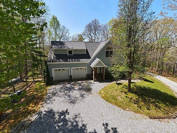 Fantastic home in Trackrock with incredible year round mountain views on 4.9 private acres with attached garage. Beautiful view from great room with cathedral ceilings, hardwood floors and fireplace. Kitchen features solid surface counters and gas range. Cozy breakfast area with tile to enjoy the mountain mornings. Huge owner's suite with large tile shower and walk in closet, very large loft space. 18x52' deck, vaulted screened porch. Finished basement with bedroom, bath, rec room, fireplace and storage room. Occupied-Security cameras in place. Beautiful Mountain Home with loads of character inside and out, on a gentle estate lot with a serene mountain view. Perfectly suited for full time living or a vacation retreat.