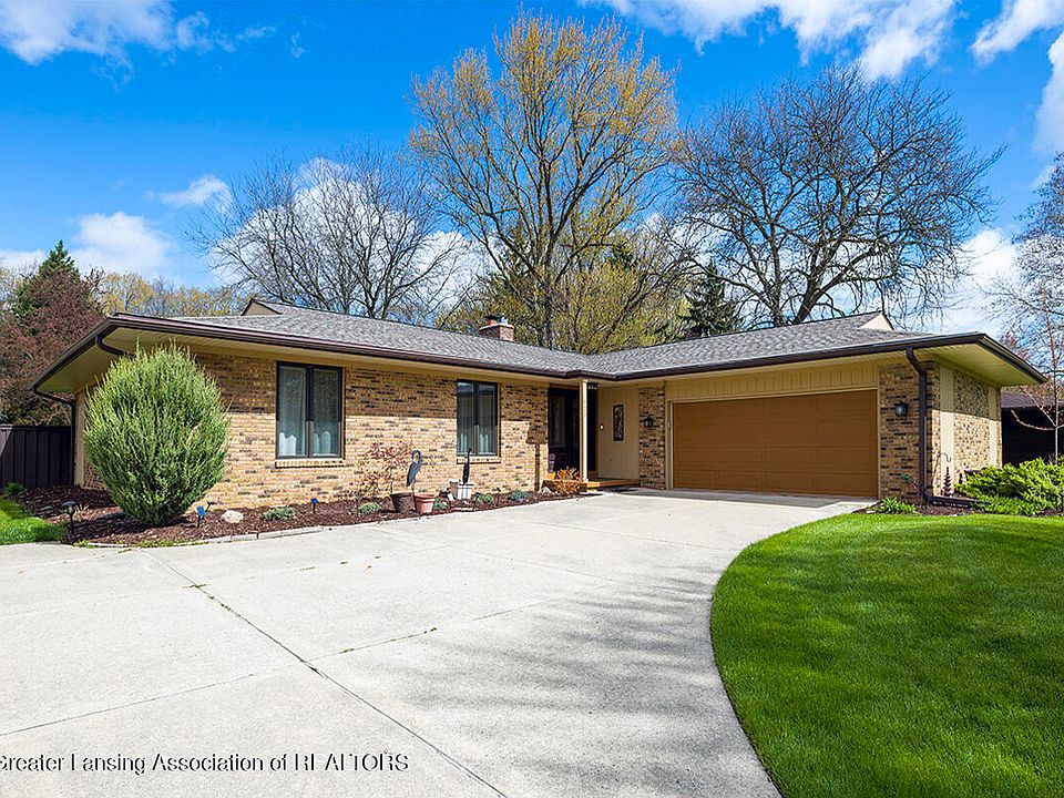 Welcome to 920 Longfellow Drive, located in desirable Shaw Estates. Upon entering this home, you and your guests are greeted by an attractive Pella leaded glass double front door and a spacious foyer with beautiful Brazilian cherry flooring. This three bedroom ranch property has been well maintained with many updates. The home offers an open floor plan, spacious rooms and wood flooring throughout. The living room has expansive windows with natural sunlight and a beautiful view of the fenced backyard and a floor-to-ceiling natural brick gas fireplace. The open kitchen is a great space for entertaining and cooking. A large center island, granite countertops and newer appliances, light maple cabinetry, peninsula with bar seating, loads of cabinets and counter space, coffee bar and dining area with a Pella sliding door that leads to the patio. The Flex Room is a great space, currently being used as a family room or could be used as a formal dining room. Three generous bedrooms with newer Pella windows, the primary bedroom offers an en-suite bathroom that has been fully renovated with a walk-in marble shower, ceiling heat lamp, mirrored vanity area, built-ins and great storage. The bathrooms have instant hot water. The lower level offers a full unfinished basement with an egress window, waiting to be finished or used as storage. A closet on the first floor could hold a stackable washer/dryer. The lawn has been professionally landscaped, fully fenced, great patio and beautiful flowering trees and a Japanese maple. Great location, close to MSU, ELPS, St. Thomas, downtown EL, restaurants and shopping. Please use Showing Time to schedule, thank you.