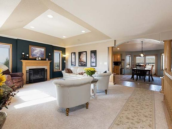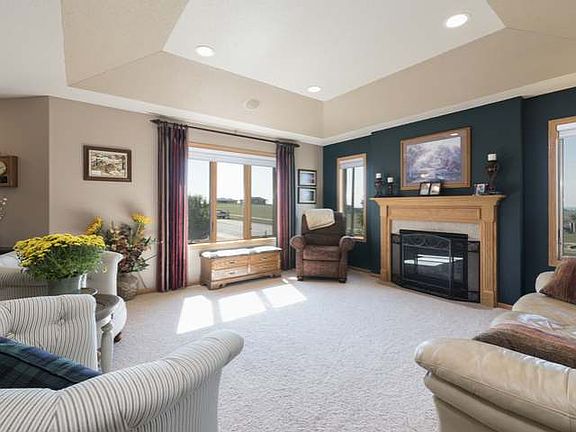 Spectacular RANCH STYLE home with South facing driveway and MAIN LEVEL LAUNDRY ROOM. Spacious, open floor plan with custom designs such as pillars, tray ceilings and much more. Beautiful kitchen with custom cabinetry, tile flooring & center island. Dining room with bay patio door to a deck overlooking the FENCED BACK YARD with sprinkler system. LARGE MASTER SUITE with private bathroom with a large 2 sink vanity, heated tile floors and walk-in closet. Another bathroom offers a WALK-IN THERAPEUTIC WHIRLPOOL TUB. Bright living room with pillars, tray ceilings and gas fireplace. Lower lever with two large bedrooms, each with walk-in closets, LARGE FAMILY/REC ROOM with gas fireplace and above ground windows, big enough room for a pool table, plus there is a large storage room. HEATED TRIPLE GARAGE with floor drain and water plus many built-in cabinets and shelving. There is surround sound throughout the house, all components will be included including large flat screen TV.