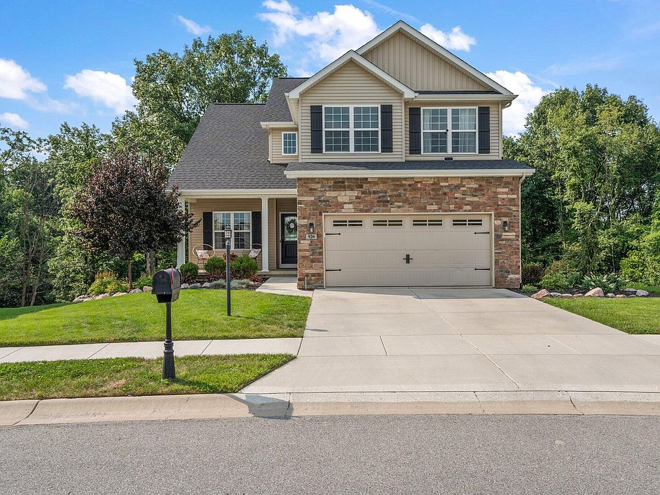 Nestled in the sought-after Hatch Lake subdivision, this beautiful two story home built in 2020 offers the epitome of modern living. This stunning, move-in ready residence has four spacious bedrooms, two and a half baths, and an array of amenities perfect for comfortable living. Step inside to an open-concept space with a versatile flex room directly off of the main entryway. The living room flows seamlessly into the dining and kitchen area, creating the ideal setup for entertaining. The kitchen boasts stainless steel appliances, a walk-in pantry, a large island, and elegant quartz countertops. From the kitchen, step outside to an inviting outdoor deck to enjoy your morning coffee. Retreat upstairs to the spacious primary, featuring his and her closets, an ensuite bath with a double vanity, and a separate shower/tub. Three additional bedrooms are located on the upper level, along with another full bath and a convenient laundry room with built-in shelving. The home also includes a large unfinished walk-out basement, which offers endless possibilities for customization. Additional highlights include, a two car garage, a main level half bath, and a mudroom with built-in storage. Situated close to restaurants, shopping, schools, and major highways, don't miss the opportunity to make this property your new home!