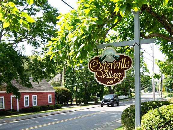Enjoy in-town living with all that Osterville has to offer at your front door. Whether looking for a pied-a-terre or a full-time residence, this first-floor ranch style 2 bed/2bath end unit WITH GARAGE in the desirable Osterville Village condominium complex could be the answer! This light and bright unit offers a slate entry and hardwood floors throughout the living and dining areas. The living room has built-in storage units surrounding the oversized window, a wood burning fireplace for cool evenings and sliders to a private patio for your personal enjoyment. Entertaining is a breeze! The kitchen with generous cabinet and counter space flows smoothly to the dining area. New SS appliances were recently installed. The light filled primary bedroom includes a large en suite bath with ample closet space and double sinks. A generous second bedroom, full guest bath and laundry area complete the living space. Recent renovations include new air conditioning system, appliances and window replacement. Close to dining, shopping, the beach and so much more...don't miss this gem!