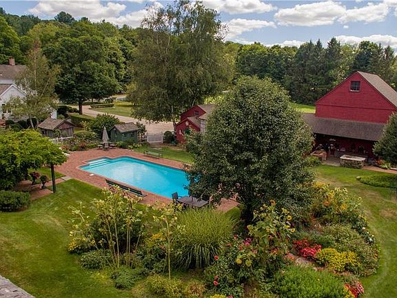 Nationally published and recognized, this extraordinary property has been continuously and meticulously improved and updated over the last 40 years. Exquisite craftsmanship and the owner/designer's impeccable attention to detail distinguish it along with her signature French Canadian style. The property includes circa 1800 Greek revival five bedroom main house, a guest cottage, six barn complex, six stall horse barn, two stall barn, chicken coop, pool house, in-ground pool and multiple small outbuildings. Outdoor destination dining is abundant, comfortable, and spectacular. "Al fresco" dinners on a screened porch or at tables on the softly rolling lawns are prepared in a modern and fully equipped "summer" kitchen. Paella is cooked on a massive outdoor stone grill pit, and fresh tomato pies are made in a custom-built European outdoor pizza oven. The property sits on the historic and protected Pomperaug River and consists of three separate lots. Fruit trees and open meadows abound on this historic, sensational estate. Ideal location in the charming town of Woodbury, the antique capital of Connecticut. Just 5 minutes from Rte 84 and 90 minutes from NYC.