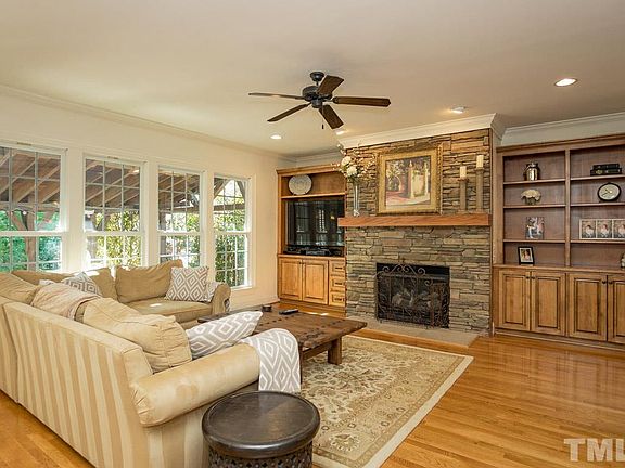 Welcoming Heritage home offers custom features & open floorplan w/ 1st floor guest bed & full bath. Open kitchen w/ granite counters, tile backsplash, gas cooktop, stainless appliances & breakfast area. Built-in shelving, stone surround fireplace & hardwood floors. Spacious owner's suite, bonus room & finishable walk-up attic. Beautifully designed outdoor living space equipped with a gas grill, prep sink, extensive bar & lush landscaping w/ irrigation that makes for a completely private backyard setting.