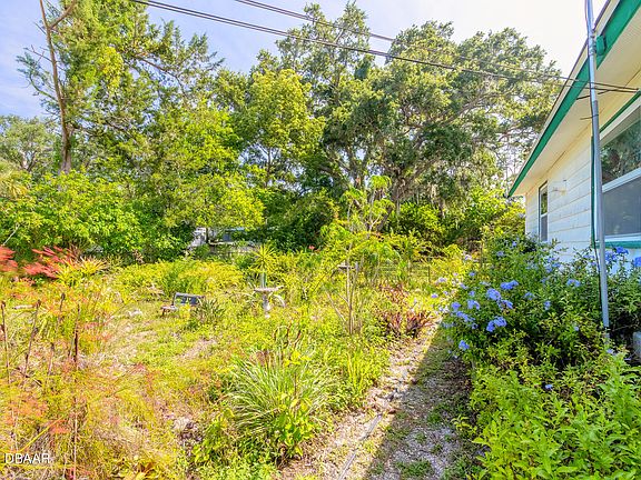This charming shabby chic cottage is situated on a spacious 0.43-acre lot in the heart of Port Orange. The home features a generous living-dining room area, two bedrooms, and one bathroom with hardwood floors in the main living spaces. Additionally, there's a lower level offering an updated bathroom, inside laundry, with a room that could be used as a primary suite, den, home office or its perfect for an in-law suite. Modern comforts include central HVAC, vinyl windows, a new water heater, and a recently replaced roof. The expansive backyard boasts beautiful natural landscaping with an abundance of flowers, plants, and two magnificent oak trees. Conveniently located near Sugar Mill Elementary School, within a highly-rated school district, and close to shopping and the beach. This property is ideal for those who appreciate Florida's lush foliage and eclectic style. Priced to sell quickly, don't miss your chance to see it today. Cash offers preferred. There are no warranties expressed or implied. All measurements are approximate. Square footage received from tax rolls. All information recorded in the MLS intended to be accurate but cannot be guaranteed. Buyers should check city zoning for rental restrictions and imapps has home in flood zone X. Flood insurance not required.