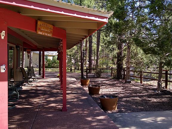 Rare turn-key furnished home nestled in the tall pines on a spacious lot. Lots of 'elbow room'. Quality craftsmanship with wood accent beams, hickory cabinets, T&G ceilings, a malapai rock fireplace are a must see. 2 bed/ 2 bath plus loft space for office and crafts. Enjoy the cool mountain air from this covered wrap around front porch. Covered attached & covered detached carport plus workshop and storage.