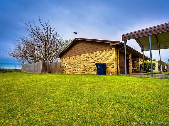 This charming brick home boasts two cozy bedrooms, one convenient bathroom, spacious living room, nice kitchen, storm cellar, fenced backyard, and a lovely covered porch that is perfect for relaxing with friends and family. Situated on a spacious corner lot, this property offers plenty of room to play and entertain. Additionally, the property features a nice shed for extra storage space, as well as an attached garage and carport for your vehicles. With its classic brick exterior and inviting porch, this home exudes timeless curb appeal. Don't miss out on the opportunity to make this delightful property your own!