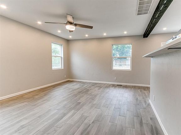 Beautifully Remodeled 3bd/1.5 bath Single Family Home in North Oklahoma City. Located minutes from the Broadway Extension, shopping, and dining options. Completely remodeled and designed to be bright, open and airy, with easy to clean wood-look tile flooring throughout the entire home, custom built bathrooms with upgraded vanities and modern finishes. Brand new garage doors and Wi-Fi enabled motor for access from your smart device. Kitchen includes brand new Samsung stainless steel appliances, subway tile backsplash, granite countertops and newly installed white wood cabinets. Open living area with new energy efficient windows, ceiling fans, wood beam for contrast, ultra-thin LED recessed lighting, newly installed Larson Signature storm door, and other upgrades for energy efficient cost-savings. New water tank installed (2023) along with new gutters surrounding the home. Ring Flood Lights installed on the front and rear of home. A rare find in this location!