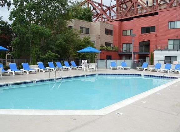 Unit # J23. Quintessential contemporary Portland condo with a river view in the heart of it all! Gorgeous Broadway Bridge vistas, new flooring, fabulous deck, spacious and light-filled layout, and so much more. This community features a pool/hot tub and is the perfect place to call home. Easy access to the light rail, steps to the boardwalk and downtown.