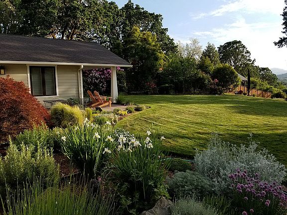The Google Street View shows the original house before we tore it down. The new structure was built in 2016. The original 1956 home underwent a $750,000 expansion and complete remodel (virtual new build). One level structure with vaulted ceilings. Two new massive primary bedrooms with large ensuite bathrooms. Two Mountain views from front and back of property. 1 acre lot with 60 year old lovely landscaping creating peaceful seclusion within city limits.