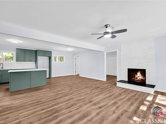 This beautifully renovated all-brick ranch home features a spacious open floor plan, perfect for modern living. As you enter through the front door, you're greeted by a cozy living room with a charming brick fireplace, seamlessly flowing into the brand-new kitchen, complete with a center island and a cozy dining nook. The home offers four generously sized bedrooms and two fully updated bathrooms, as well as a convenient laundry room. The backyard is an inviting outdoor space, ideal for relaxing or hosting gatherings around a fire pit during the cooler months.