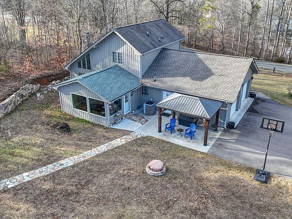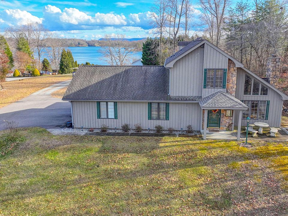 This beautiful contemporary lake view home has the most incredible sunrises, terrific location & 2 lots included w/1.32 acres! Enjoy the one level living w/Great Room w/skylights, fireplace, cathedral ceiling & wood floors. Kitchen w/stainless steel appliances, granite countertops & dining area that was been remodeled 5 years ago. Family room w/fireplace & additional dining area. Primary bedroom suite that was remodeled 3 years ago. The upper level has guest bedroom (2) and bedroom (3) is an open loft with a Murphy bed (being used as an office presently). Home has a one car attached garage. Extra lot has a 2 car detached garage (sold as-is) w/upper level unfinished storage area. Paved driveway, public water, Gazebo & patio. 2 bedroom septic system. Septic was just pumped out in January. Lake Access is close by located just off Oak Grove Dr. Boat Launch & lots of parking available. Upper bedroom has a bay window. Seller converted part of the 2 car garage into a single car garage with a 7' x 14' space for grill & storage. The other part of the garage on that same side was used for the laundry room and enlarging primary bathroom. Kitchen has a breakfast area on the end of the counter set up for bar stools. Lake views from front and back side of home. 10" Channel Rustic Cedar Siding on Main house and vinyl siding on detached garage. Extra lot with the detached garage does not perk