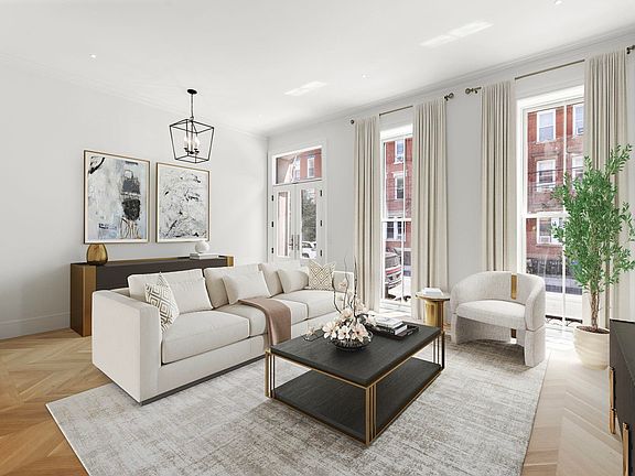 Presenting 920 Park Ave, a stunning 5-bedroom, 4.5-bathroom brownstone townhome on a 20'x100' lot. This luxury residence combines modern design with impeccable craftsmanship, featuring solid white oak chevron hardwood on the parlor floor, 6" straight plank hardwood upstairs, and 24"x48" porcelain tile on the garden level. The Chef's kitchen boasts white oak cabinetry, Calacatta Viola marble countertops, a Subzero 48" fridge, Wolf dual fuel range, and custom hood. The master suite offers an opulent en-suite bathroom, dual walk-in closets, and Brizo luxe gold fixtures. Additional bedrooms include walk-in closets, plus a dedicated home office. Smart home features include EcoBee thermostats, ultra-efficient HVAC systems, and tankless water heaters. The laundry room is equipped with Electrolux front-load steam washer and dryer and a Caesarstone countertop. 920 Park Ave offers an unmatched blend of luxury, sophistication, and modern amenities, creating a truly exceptional living experience.
