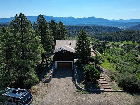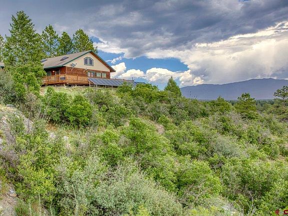 IMPECCABLE HOME WITH HUGE SAN JUAN MOUNTAIN VIEWS! This 2059 heated sq. ft. home with 2 car 422 sq. ft. garage sits on 1.8 acres located only 5 minutes to either up town or down town Pagosa Springs, Co, home of the Healing Waters Hot Springs and Wolf Creek Ski Area. GREAT OPPORTUNTY TO OWN THE VIEW THAT EVERYONE WANTS! This fantastic home has been upgraded or remodeled nearly from top to bottom with beautifully thought-out appointment always keeping the view in mind. When you walk in this home you immediately notice the views and that the windows are perfectly situated to take in those breathtaking views. NEW PAINT THROUGHOUT, FRESH COAT OF EXTERIOR STAIN AND PAINT, NEW ANDERSON WINDOWS THROUGHOUT, NEWER WOOD GRAIN STYLE TILE FLOORS with radiant floor heating, the COOL SLATE FLOORS GIVE IT THE RUSTIC SOUTHWEST FEEL and the radiant floor heat is unbelievably comforting in the winter. ROOF HEATERS BUILT INTO THE NORTH AND SOUTHWEST VALLEYS (WOW), SECURITY SYSTEM AND CAMERAS, WHOLE HOUSE ATTIC FAN, NEWER BOILER for radiant heat, FULLY INSULATED EVERY NOOK AND CRANNY TOP TO BOTTOM, INSTANT TANKLESS HOT WATER, CUSTOM SOLID WOOD TRIM THROUGH OUT THE HOME WITH PINE TONGUE AND GROVE CEILINGS. The living area is situated around the river rock custom stacked gas fireplace with rock mantel, hearth for sitting or a beautiful display for your treasures. Some more of the wonderful things about this home include a brand new custom designed light and bright kitchen with top of the line granite counter tops and island with plenty of storage drawer banks, hand crafted solid cherry wood cabinetry with custom lighting, bright open vaulted ceiling with sky lights, plenty of cabinetry for all the chefs gear and more, radiant heat tile floors, views of the mountains from the kitchen sink, top of the line plumbing fixtures and black stainless appliances. The secondary bathroom has been completely updated and remodeled with custom tiled walk-in shower, solid wood cabinetry and granite counter top. Secluded down the hallway is the primary bedroom located on the same main living level with its own door leading to the back deck and hot tub. The primary bathroom has a granite counter top, double sink vanity, authentic antique claw foot tub and walk in easy access shower with glass door surround. Located on that same level are 2 nice size bedrooms. A family room/office/exercise room (you pick) has a beautiful and efficient antique wood stove and makes a fantastic place to hang out. This area is idea for an office with good internet service, an outside entry door and lockable interior door. The 1200 sq. ft. wrap around redwood deck has great mountain views, access to the hot tub on a concrete pad and lockable storage chest with corded electric snow thrower. This beautiful home has been recently stained, painted and maintained impeccably over the years It's a great buy with million-dollar views. This energy efficient home has a ground mounted solar panel system grid tied with LPEA and the current owner pays approx. $36 a month excluding hot tub. This system is a real plus especially in this day and age with the high price of utilities. THE BONUS IS THE EXTRA 289 sq. ft. 1 CAR NATURAL GAS HEATED WORKSHOP/GARAGE with vent system, electric, and concrete floor, but cabinets do not stay. The 422 sq. ft. basement style 2 car garage has a concrete floor, utility sink with winter shut off valve. Located on this same level is a great concrete floored storage utility closet/storage area with some shelving in place. Pagosa Hills HOA fees are $55 per year and Archuleta County restrictions do apply. Huge gravel areas in the front yard will accommodate multiple vehicles and trailers and has a sewer dump access. The wood splitter, log trailer and chain saws can be purchased separately.