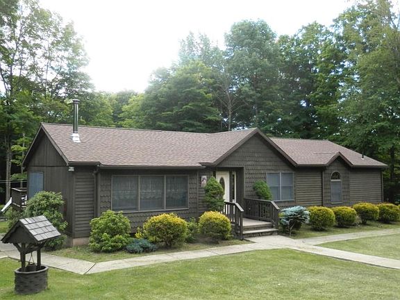 SPRAWLING RANCH HOME A TRULY PRIVATE PARADISE IN BEAUTIFUL NORTHERN WAYNE COUNTY INCLUDING 3 PRIVATE ACRES MOSTLY MATURE HARDWOODS & A NICELY MANICURED YARD. FEATURES 3 BEDROOMS W/ MASTER BEDROOM & BEAUTIFULLY TILED LG MASTER BATH. OPEN FLOOR PLAN FOR GREAT FAMILY TIME ALL W/BEAUTIFUL HARDWOOD FLOORS UNDER THE CARPET & VERY COZY SUN ROOM & RELAXING LG SCREENED IN PORCH TO RELAX IN THE GREAT OUTDOORS. HUGE DRY FULL BASEMENT WHICH CAN BE EASILY FINISHED W/ HIGH CEILINGS. CONVENIENT GROUND LEVEL OUTSIDE ENTRANCE! HOUSE COMES TRULY COMPLETE WITH OVER-SIZED 2+ CAR GARAGE W/ ENOUGH ROOM FOR CARS, DIRT BIKES & WORKSHOPS. GREAT PROPERTY IN WONDERFUL SCHOOL DISTRICT W/SMALL CLASSES & MUCH MORE! CLOSE TO ELK MOUNTAIN FOR SKIING & RAILS AND TRAILS FOR FANTASTIC SNOWMOBILING!!