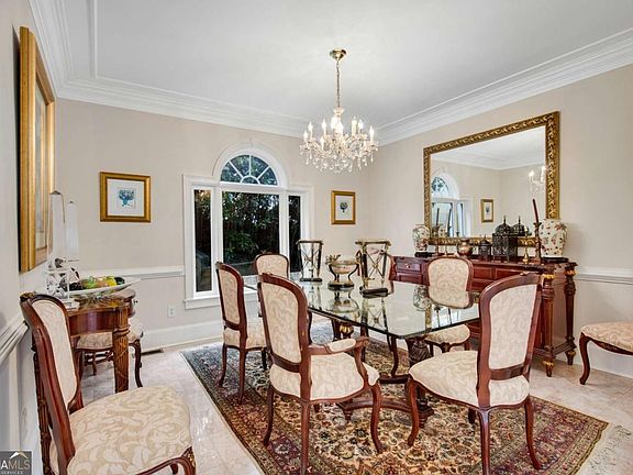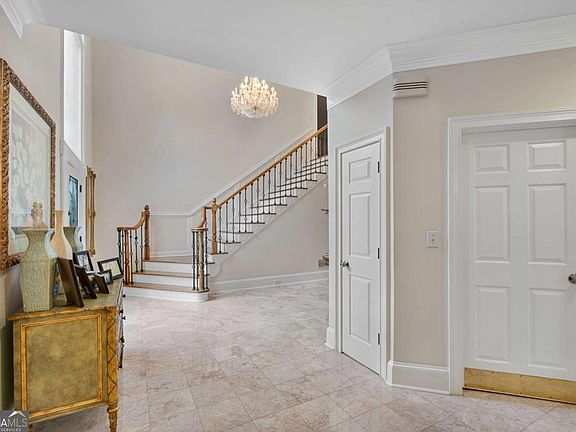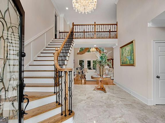Welcome to this elegant & stunning one-owner residence located in a highly sought-after Riverfalls gated community just minutes from vibrant Downtown Roswell! Enjoy the convenience of being just minutes from local schools and having multiple routes to access GA-400, making travel simple and stress-free. From the moment you enter the grand 2-story foyer, you'll be impressed by the craftsmanship, trim work, and built-ins you simply won't find in today's new construction. The updated chef's kitchen (approx. 2 years ago) features stainless steel appliances and opens to the impressive 2-story family room with a double-sided fireplace, making it perfect for entertaining or relaxing with family. Gorgeous hardwood floors flow throughout the main level. The luxurious primary suite on the main boasts a trey ceiling, a double-sided fireplace that serves the Great Room and the Primary Bedroom, and a spa-like bathroom (remodeled approx. 3 years ago) with his & her closets. The main level also offers a guest half bath and a convenient laundry room with sink. Upstairs you'll find 2 spacious bedrooms, 2 full baths, and a large bonus/media room with wet bar - an ideal teen suite, playroom, or additional living area. The terrace level includes a partially finished basement with bedroom, bath, office, and living spaces, plus a huge unfinished area perfect for a future home theater or gym. Step outside to the expansive deck overlooking a private setting - the perfect spot for gatherings. Newer HVAC systems for peace of mind. The community features a beautiful community pool for added amenities. Best of all, the HOA maintains the landscaping, offering a low-maintenance lifestyle in a luxury setting. Hurry, before this property is gone!