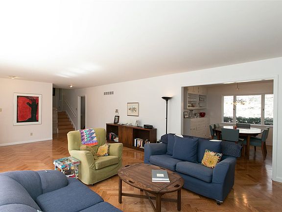 This mid-century gem of fine materials and craftsmanship has numerous updates but retains the qualify and charm of its day. Main and upper levels are showcased by many large windows allowing light to gleam on vast expanses of handsomely laid warm-stained oak flooring. Large kitchen with breakfast area. The master bedroom has a shower-bath, and the other bedrooms are served by a full bath off the hallway. Den area off formal living room. Family room, rec room with wet bar, and updated bath in lower level.