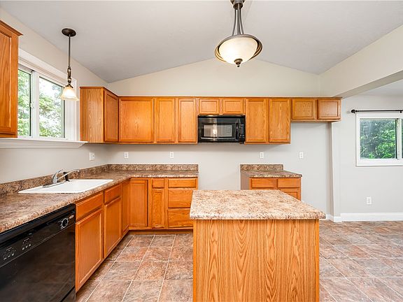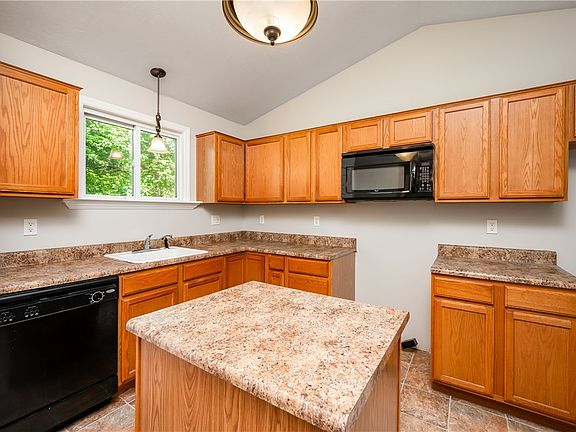 This quaint ranch-style residence offers a perfect starter home opportunity, boasts 3 bedrooms, 2 full baths, & a tranquil 1-acre lot with fantastic views. This home sits proudly on a spacious, level lot, offers endless possibilities for outdoor activities, gardening, or even the potential for expansion. The heart of this home is the kitchen with ample counter space, an island, & a pantry. The package is complete with a dishwasher & microwave for your convenience. The master bedroom features a vaulted ceiling & adjacent bath. The 2 other bedrooms are serviced by a separate bath. The main floor also offers a living room for family gatherings & a laundry room with cabinets for storage. Enjoy a the outdoors with the 25' covered front porch, perfect for unwinding with a cup of coffee as you soak in the beauty of the surroundings. Additionally, the 10'x20' rear deck provides an exceptional space for outdoor gatherings, barbecues, or simply relishing the serenity that the property offers.