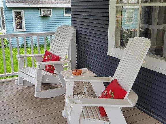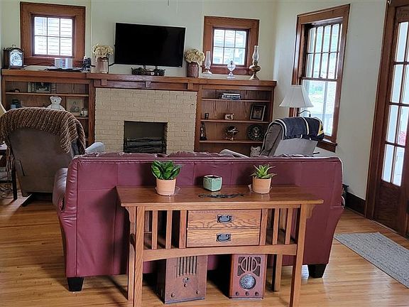Charm abounds from the minute you see this fantastic 1 1/2 stories stature & great open front porch for those morning coffees. As you enter you will see the lovely beveled front door with 2 side panels & all the natural light flooding into the huge living room with oak floors & electric fireplace. An arched doorway will lead you from the huge living room to a super spacious formal dining room. Newer AC-2012, water soft. 2019, water heater 2019. Almost all newer windows. High efficiency furnace with humidifier, freshly painted. Great kitchen island bar ideal for morning breakfast & lots of counter top for baking. Main floor bedroom would make a great office. Master suite features walk in closet & jetted tub. Basement 3 south windows new in 2020, carpet 2021. Replumbed & rewired in the 90's. Lawn service paid through end of the season. Basement apartment area has stove and refrigerator that stay. Great private patio in back. Huge garage complete with awesome workshop complete with A/C 16x12. Huge parking area off of alley.