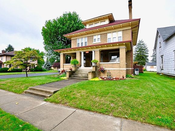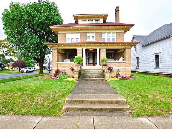 Hard to find beautiful 4BR all brick "Four Square" style home in the heart of Elwood. Home features a fantastic kitchen with plenty of cabinet & counter space, breakfast bar and double oven. Light bright and airy breakfast room. Huge formal dining room for gatherings. Living room with gas fireplace, wonderful built-ins and stained glass. 4 Bedrooms up. Walk-in closets. Wonderfully updated full bathroom. Take the stairs up to the open attic for tons of additional and flexible space. Basement with bar room, excercise room and full shower. Watch the world go by on the fully covered front porch or enjoy the peace and quiet from the paved patio overlooking the fully fenced backyard. This gorgeous home is definitely a must see!